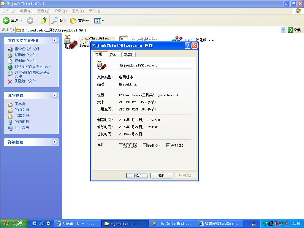 我前不久用HijackThis1.99.2是的时候卡巴斯基提示有病毒不知道是怎么回事.