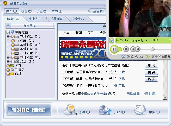 今天升级2006版,感觉不错,杀出几个病毒!