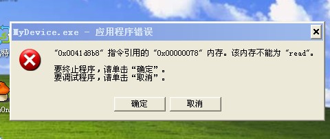 像这样的情况都属于程序自身的BUG,你往往可在特定的操作顺序下重现错误。无效指针不一定总是0,因此错误提示中的内存地址也不一定为“0x00000000”,而是其他随机数字。