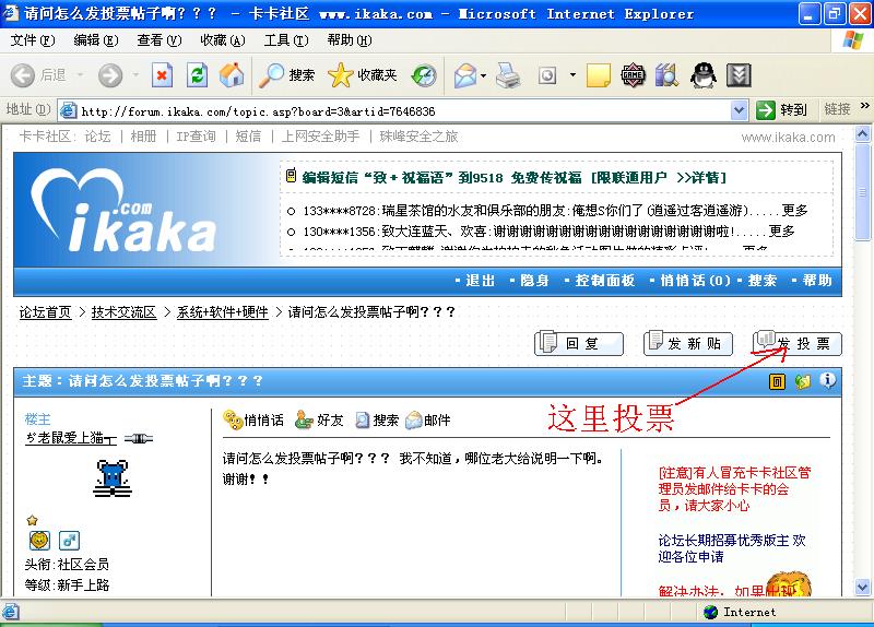 请问怎么发投票帖子啊???  我不知道,哪位老大给说明一下啊。谢谢!!