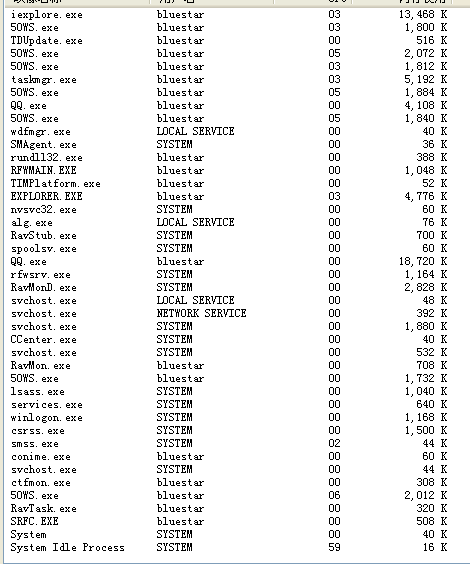 楼主开了那么多进程阿,汗颜啊,我的只有22个。