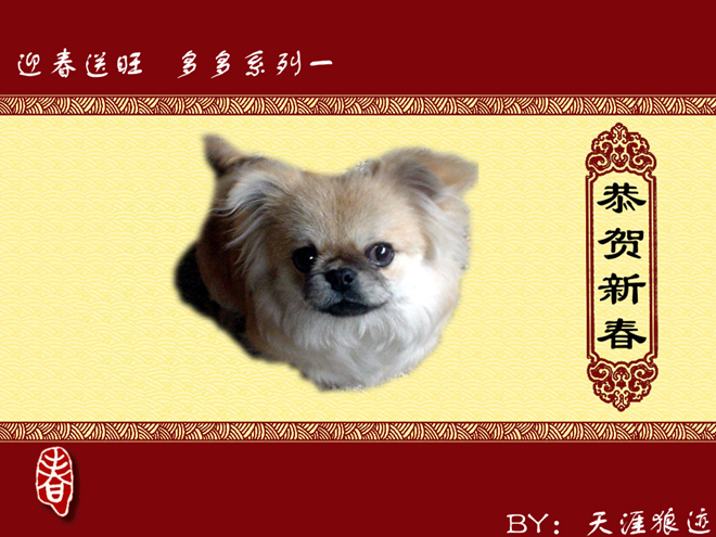 多多很上镜啊!欢欢的贺卡做得漂亮,很有中国味道!(PS:我指的是花色,保证没多多的事情~)