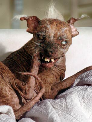 它叫山姆,曾经在加利福尼亚的世界丑狗大赛上连续三年被评为“世界上最丑的狗”,但现在不幸去世了。(美联社)