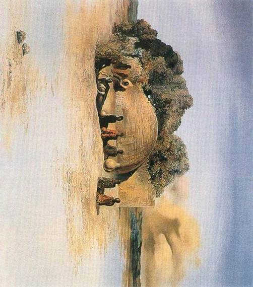 西班牙的超现实主义者萨尔瓦多·达利在看到一幅明信片后受启发产生灵感,创作了这幅模棱两可的画面,把整幅图旋转90度你会发现其中的奥秘。