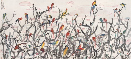 NO.8:吴冠中1988年作《鹦鹉天堂》(设色纸本、145×310厘米,北京保利2005秋拍,成交价:人民币30,250,000元)