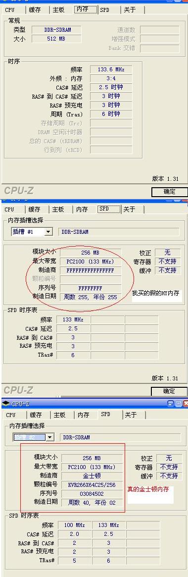没有人知道为什么吗 这是单根的256M内存 同一根内存的2张
