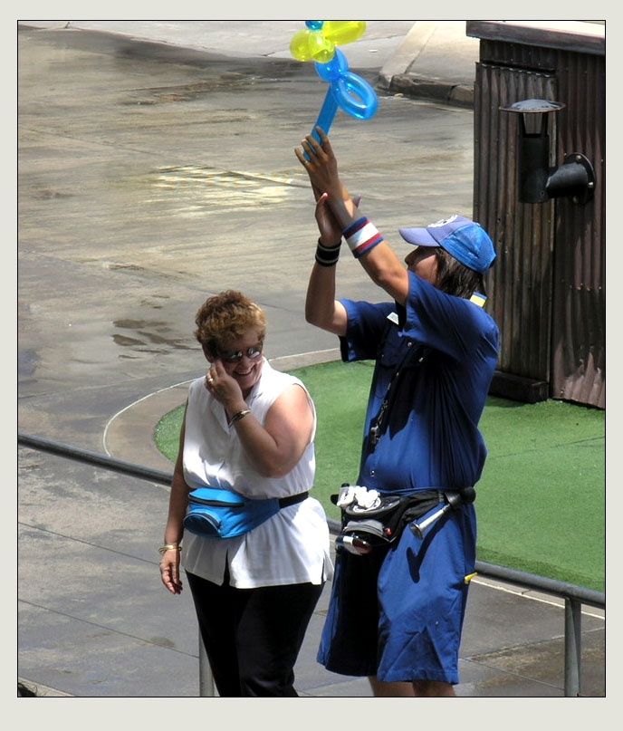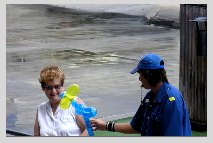 | 【玻璃。的贴子】好玩儿,拧花的泡泡颜色真漂亮,蓝配黄简单却出彩! 亲一下以后,花就送给那位女士了吗? 楼主可以当特工了,嘻嘻:) ........................... |