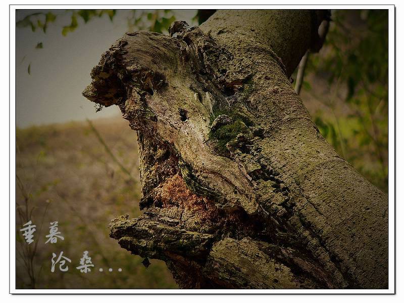 楼主的两张片片都不错,特别是第一张苍桑,苍劲的树干配灰灰的色调,加上同样显得暗哑的文字,很有历史感~