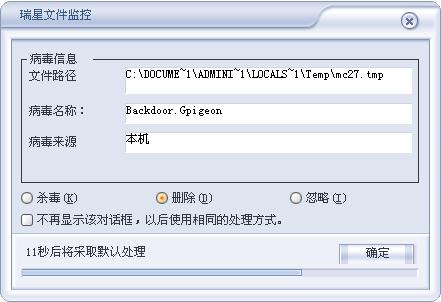 然后杀毒失败 选者删除 就说在重新启动以后会删除该文件