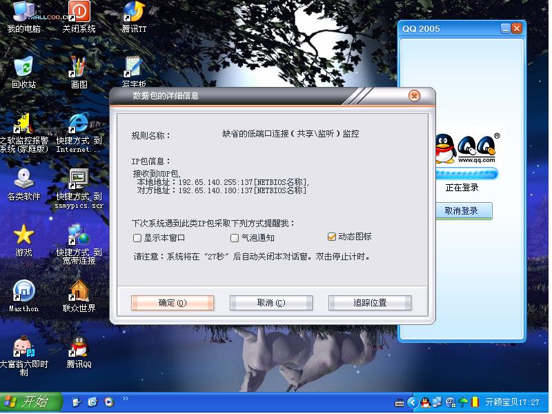 昨天下了瑞星的规则包并安装完毕,今天早上打开机就开始提示:缺省的低端口连接(共享\监听)监控
