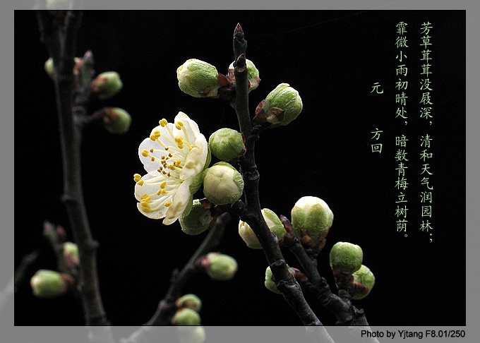 抄录元代诗人方回《春晚杂兴》:“芳草茸茸没屐深,清和天气润园林:霏微小雨初晴处,暗数青梅立树荫。”
