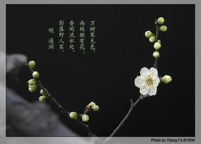 “万树寒无色,南枝独有花;香闻流水处,影落野人家,”