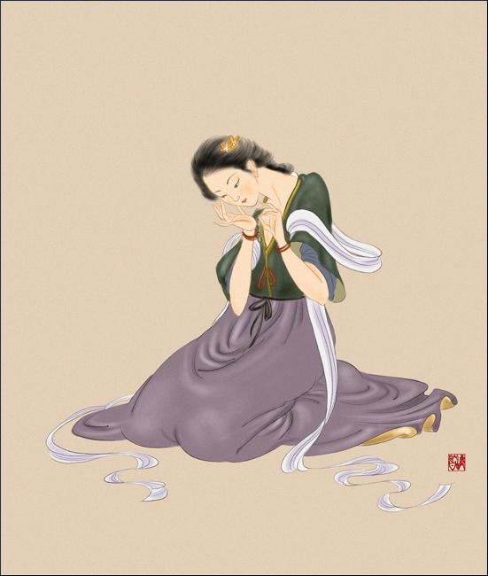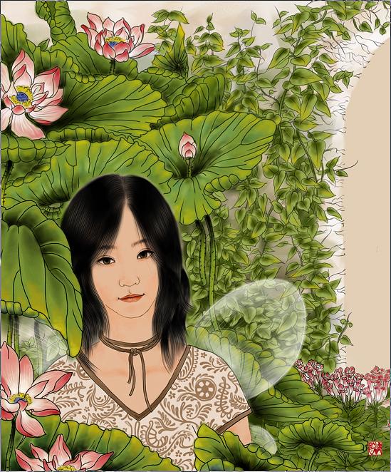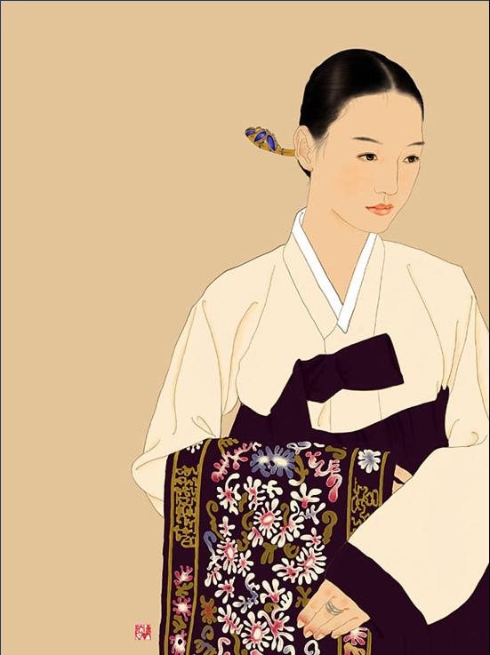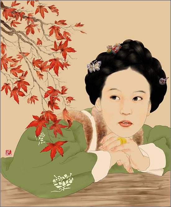受中国文化的影响,中国画,年画的风格。