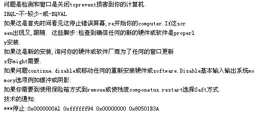 ***STOP:0x0000000Al 0xffffff94 0x00000000 0x80501B3A