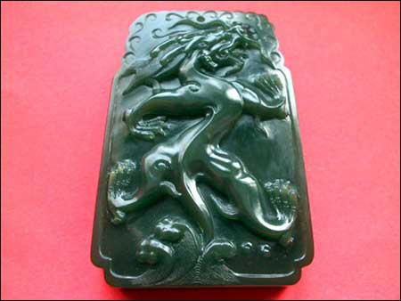 青玉和青白玉:色呈深灰绿至蓝绿色,不透明;青白玉是青玉与白玉之间的过渡类型,呈灰绿色。
