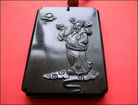 黑玉:主要含分散的碳质或石墨而呈灰黑色或灰黑与白色相间的条带。如果完全是黑色的,称墨玉。