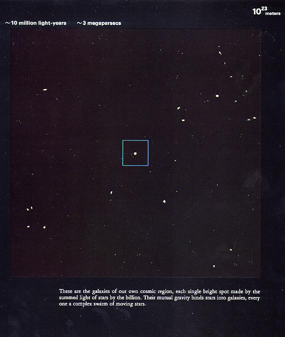 现在我们把视野缩小10倍,宇宙看起来还是空空如也,“星”光点点。可是,那些点点斑斑的真的是星么?