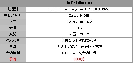 白色是会令每个女人心动的颜色,白色和女性搭配让女性更显清新、纯洁。这款纯白色的神舟优雅Q310N在外型设计上依然沿用着Q300的模板,采用13.3寸的瑰丽屏镜面高亮宽屏,拥有比传统液晶屏更饱满和更逼真的色彩还原效果,分辨率高达1280×800,16:10的画面比例也符合人眼的视觉习惯,不过由于它采用了新的Napa平台,所以在性能上有了很大的提高。神舟在广大消费者的心目中,一直是性价比的首选,而神舟事实上也没有让广大用户失望,能够及时推出了Napa平台上的平民笔记本,神舟的加入相信也将对Napa笔记本市场带来不少的一定的冲击。