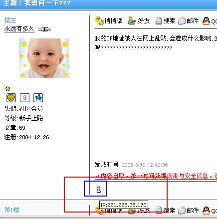 2楼楼主不知道你是什么意思?自已的IP我是知道的呀,但有人就是把我的IP在网上乱贴,我会不会受到影响啊??????????