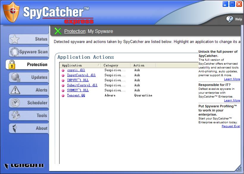 前面说了,由于它的定义库数据量比较大,因而显得间谍软件定义比较严格,看图:“Tencent QQ”被定义为广告软件,不更改这个的情况下,QQ是无法运行的。