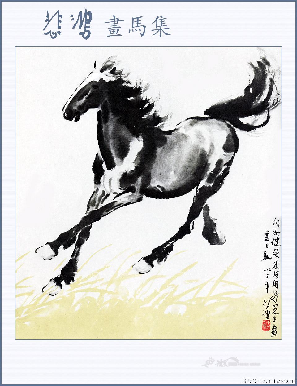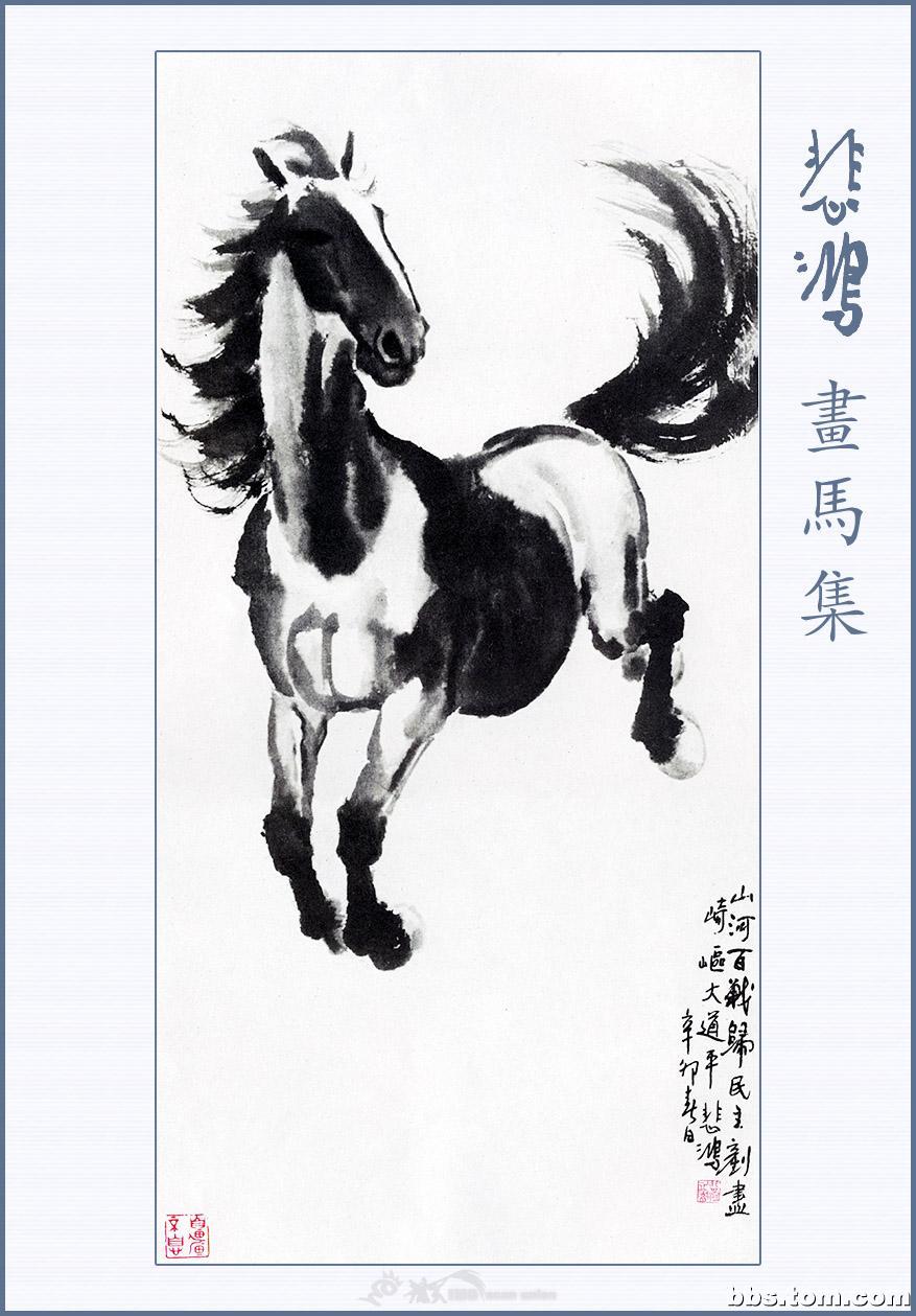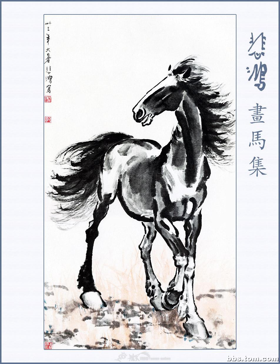 徐悲鸿(1895—1953),是现代中国杰出的画家及艺术教育家。他出身画家家庭,曾被康有为誉为画坛奇才,除了中国水墨画之外,它的油画,素描,书法皆十分出色。然而,最能反映徐悲鸿个性,表达他思想感情的莫过于他写马的画卷。他对马的肌肉、骨骼以及神情动态,作过长期的观察研究,所以他画的马图笔墨酣畅,奔放处不狂狷,精微处不琐屑,筋强骨壮,气势磅礴,腾空飞驰,昂首嘶鸣,回首顾盼,神态各异,足以看出徐悲鸿深厚的艺术功力和卓越的绘画技巧。徐悲鸿的马和齐白石的虾一样,尤其受到人们的赞赏与钟爱,以致成为中国绘画的一种典型代表与象征。几乎历代中国画坛皆有画马高手,但他画的马却更具精神和动感,体现着一种雄健壮美的神韵,散发着英雄主义的精神,真可谓“前无古人,后无来者”。被誉为“天下画马第一人”,一代宗师的神韵在他的画马作品中体现的淋漓尽致。如果说莫奈为刻划窗前手植的睡莲奉献了一生最后的十年,那么,徐悲鸿为使马臻于神妙所倾注的则是四十年的心血。