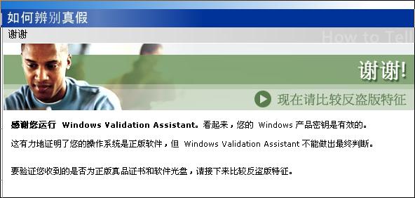 这有力地证明了您的操作系统是正版软件,但 Windows Validation Assistant 不能做出最终判断