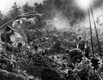 1966年,美国直升机飞抵西贡以北15英里处,为地面部队送来大批补给。这是直升机发明以来最壮观的一张照片。