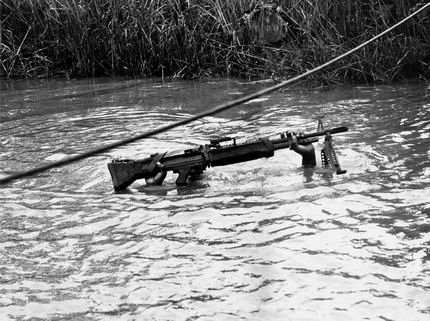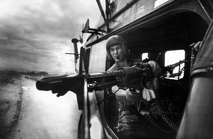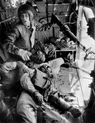 这是越战中最富有戏剧性和最难忘的一组照片故事。靠近岘港的地方,“YP-13”靠近着陆点时,詹姆斯·法利用M-60机关枪 朝地面猛烈开火