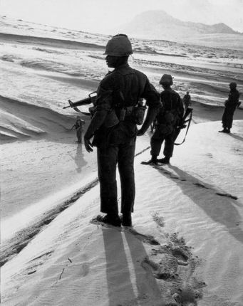 第一装甲侦察分队的士兵在越南中部海岸的广阔沙滩上执行巡逻任务。相比起闷热潮湿且处处布满杀机的丛林。在这样开阔的地形上行走对美军士兵来讲简直是一种享受。