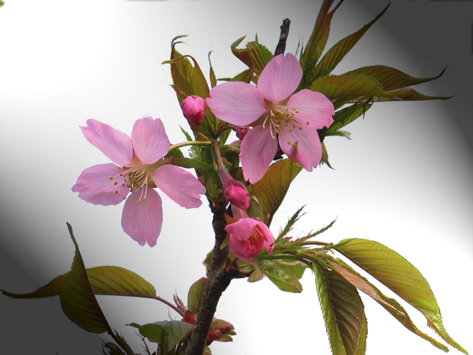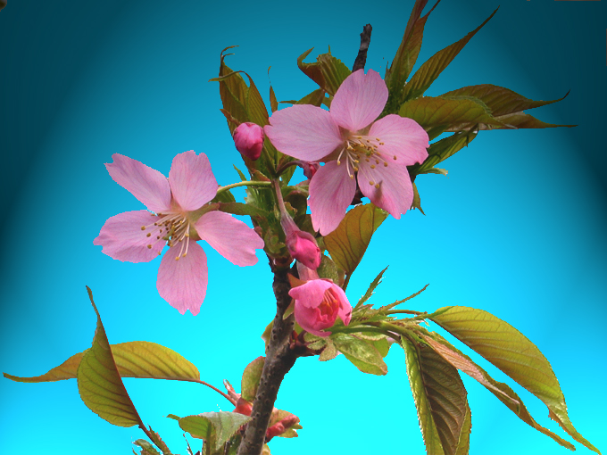在“蜂鸟网”上看到一篇用电脑布光的好文章,于是将自己拍的一张樱花图片“渲染”一番,用虚拟的光源来突出主题。