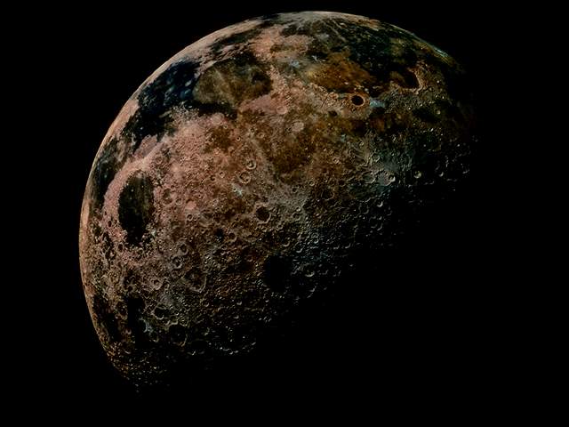 月全食时,阳光经地球低层大气折射,照在月球上呈现红铜色