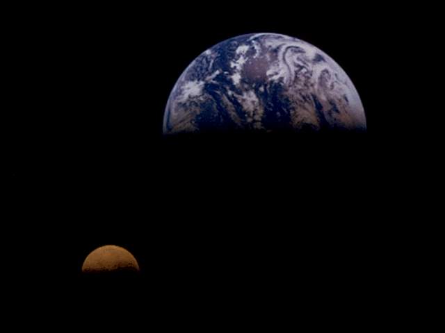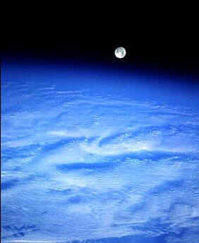 从在轨航天飞机上看月亮,它正从地球上空升起