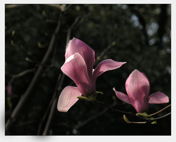 | 【玻璃。的贴子】非常喜欢这几张紫玉兰,光透透的,背景虚得漂亮,好看! 现在最漂亮的是5楼; 最可惜的是4楼,如果上方的那朵花能够完整,整个画面就太强了; 3楼可能需要一些小手段,把左侧背景压黑变虚,画面应该会更好! 1楼的花好深情啊,紧紧依偎着,它们等这个日子应该很久了吧,唯心一下^*^ ........................... |