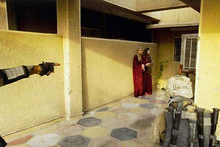 美国记者FrancoPagetti所拍摄的《寻找起义军》赢得了突发性新闻类单幅银奖,图为2005年3月7日,在伊拉克Ramadi的东南附近的Sophiaa,这个在巴格达西边113公里的地方被怀疑是起义军的重要据点。