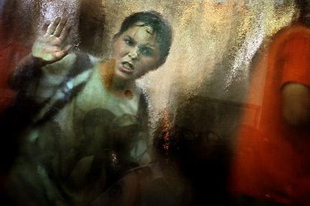 路透社记者DamirSagolj所拍摄的《愤怒的犹太男孩》赢得了非突发性重大新闻类单幅银奖,图为2005年8月18日,以色列警察和军人冲进了位于NeveDekalim的GushKatif的犹太人聚居地,一个犹太小男孩在犹太教会堂内愤怒的看着外边。周四,以色列军队包围了加沙地区的两个犹太教会堂,将抵抗者赶出了他们最后抵抗的堡垒。