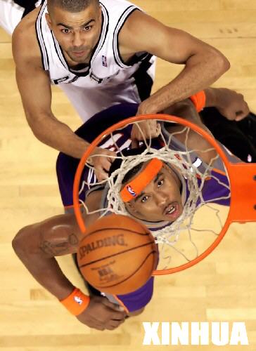 这是获得体育类单幅铜奖的作品《篮球--NBA西部决赛:太阳胜马刺》。