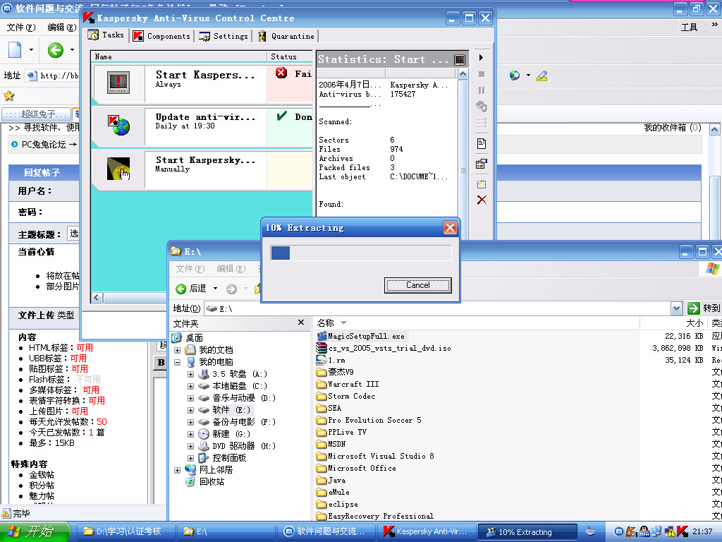 我刚才打算安装魔幻影音,结果发现自己的卡巴斯基实时监控自动关闭了~我测试过,在解压魔幻影音安装包时,实时监控自动失效,我试了好几次,希望大家注意!!!