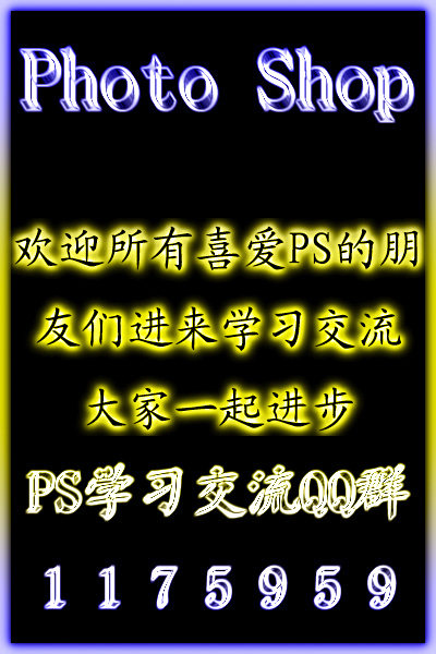 新建PS学习交流群欢迎喜爱PS的朋友们的加入,同时诚邀PS高手进来给大家做指导!QQ群号码:1175959