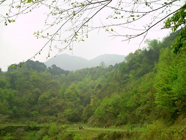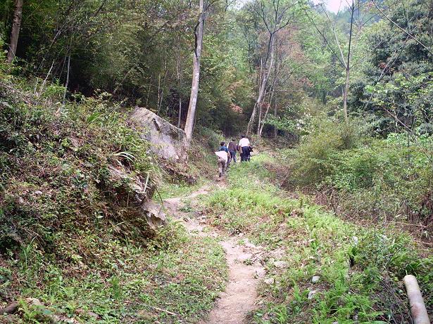 2、我们的队伍沿着蜿蜒曲折的崎岖山路向大山走去