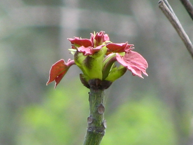 1、梧桐新叶,看那坚挺的枝上一簇叶——