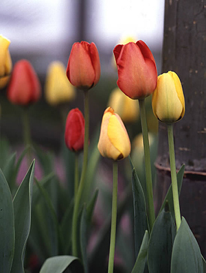 红黄的郁金香组合