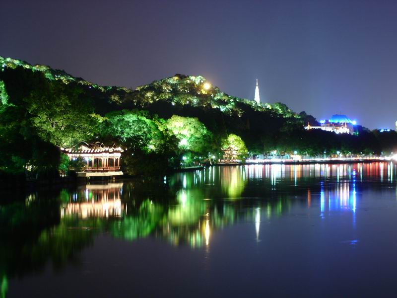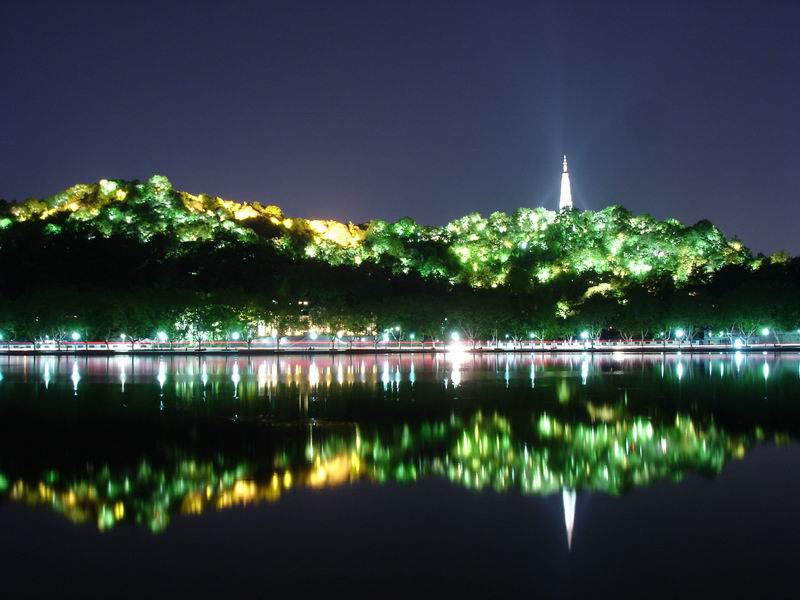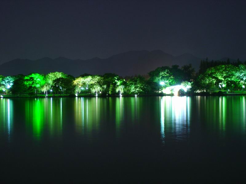 西湖夜景真是不错,可惜偶晚上没有到苏、白堤上去看看,只在湖边转了一会儿!