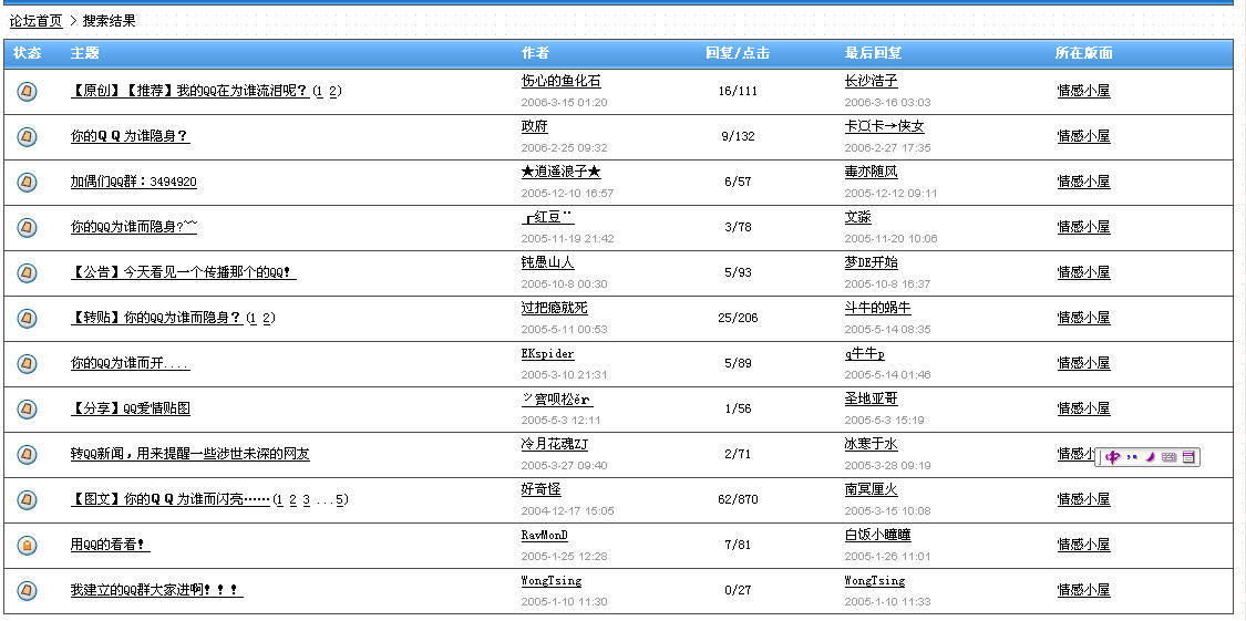 可是我在小屋搜索了一下QQ,并没有发现与我发的帖子重复的帖子