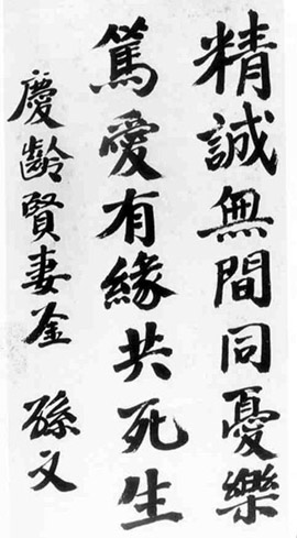 孙中山书赠宋庆龄的对联:精诚无间同忧乐,笃爱有缘共死生