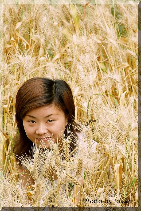 小MM的脸确实有些不好看,不过这是实情,本身有些黑,加上黄色麦穗一映,就这色儿了!没PS。