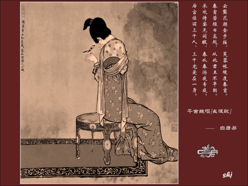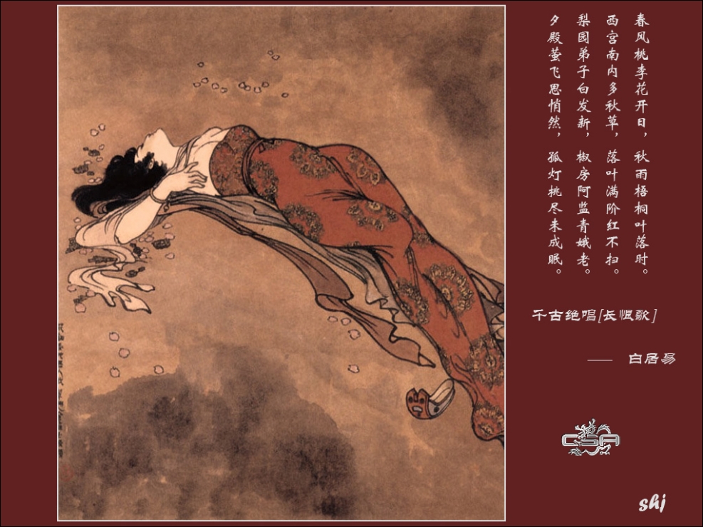 这首诗作于唐宪宗元和元年(公元806年),时作者35岁,任周至县尉。关于这首诗的写作缘起,据白居易的朋友陈鸿说,他与白居易、王质夫三人于元和元年十月到仙游寺游玩。偶然间谈到了唐明皇与杨贵妃的这段悲剧故事,大家都很感叹。于是王质夫就请白居易写一首长诗,请陈鸿写一篇传记,二者相辅相承,以传后世。因为长诗的最后两句是“天长地久有时尽,此恨绵绵无绝期”,所以他们就称这首诗叫《长恨歌》,称那篇传叫《长恨传》。