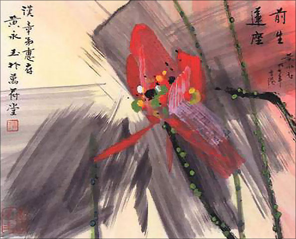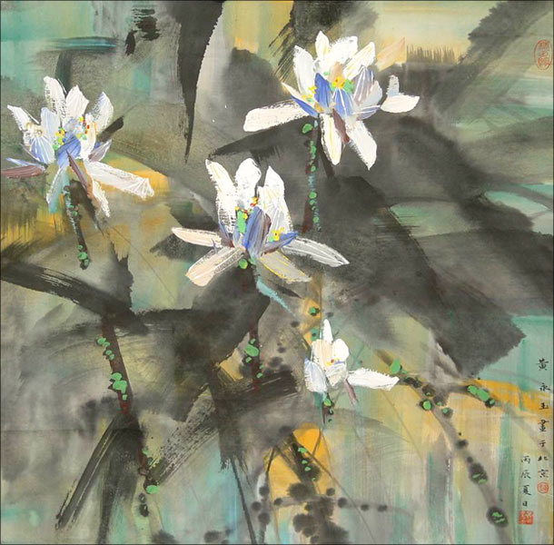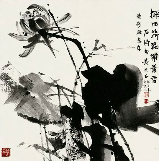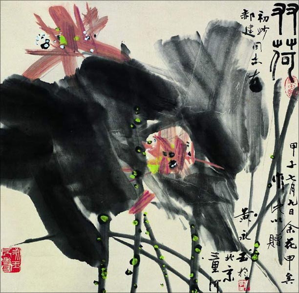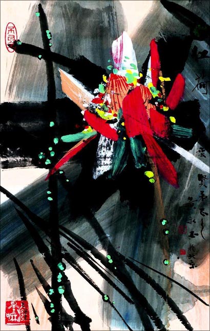 黄永玉笔下的荷花是具有独特风格的,它们没有给人那种非常清高、出世的感觉,而是一种很绚丽、很灿烂的气质。他曾开玩笑说荷花从哪儿长的,从污泥里面长的,什么是污泥呢?就是土地掺了水的那个叫做污泥,是充满养料的那种土。