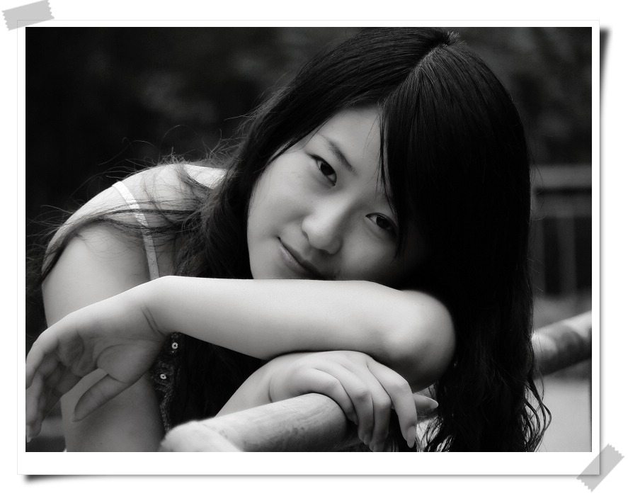 黑白的色调摒弃了颜色的喧闹,突出了MM恬静柔美的脸,赞!