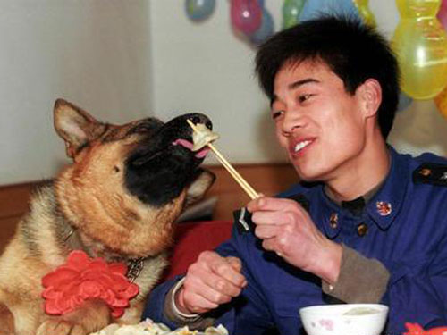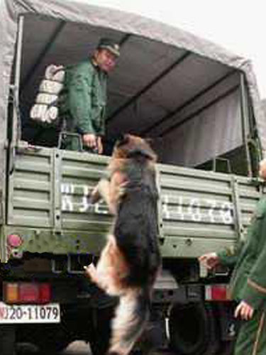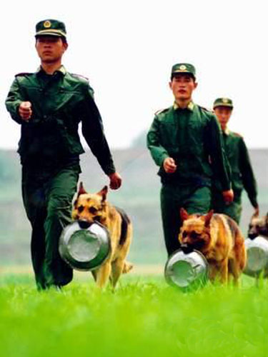 “幼犬宿舍”的管理非常严格,无关人员一律禁止入内,进入者必须穿上消毒后的白大褂,套上卫生鞋套。看着犬舍内活泼可爱的小犬,听着外面迎春的锣鼓和鞭炮,军犬训练队的李志忠队长抑制不住满脸的喜悦:“2005年我们共繁育了200多条幼犬,创了历史新高。更重要的是,我们通过近半个世纪的努力,让中国的军犬过上了幸福的生活。”