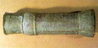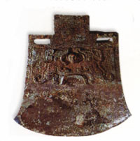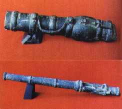彩绘铜车。前面的一号车为双轮、单辕结构,前驾四马,车舆为横长方形,宽126厘米,进深70厘米,前面与两侧有车栏,后面留门以备上下。车舆右侧置一面盾牌,车舆前挂有一件铜弩和铜镞。车上立一圆伞,伞下站立一名高91厘米的铜御官俑。